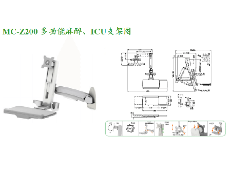 2.麻醉机支撑臂可上下左右移动,方便用户各个角度的操作,不使用时支架可紧贴于麻醉机侧面,最大限度节省空间。